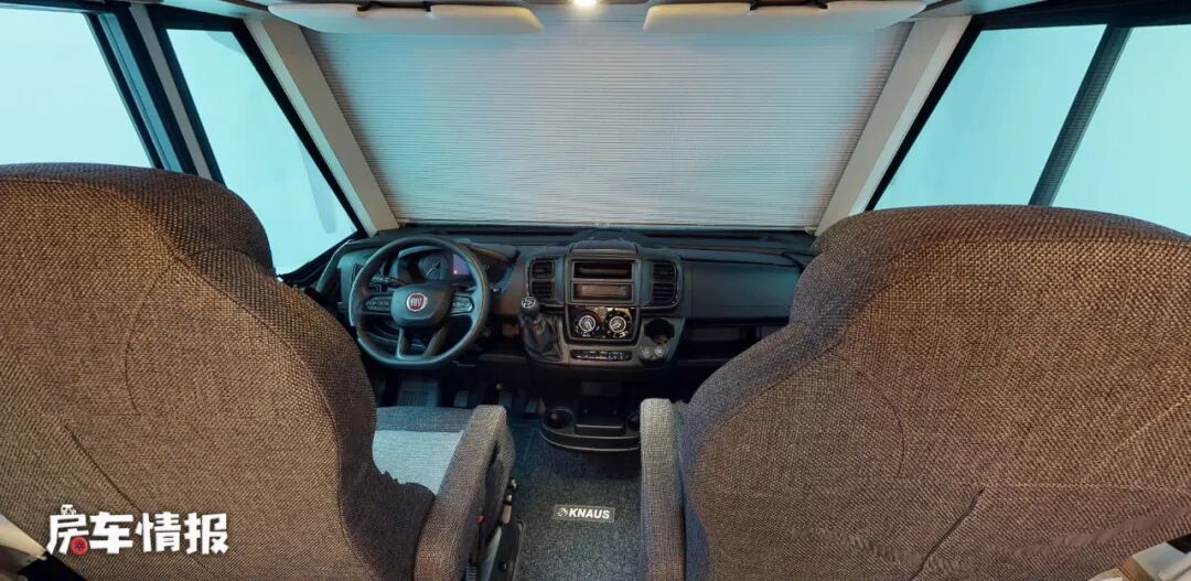 驾驶室和生活空间相通,并且驾驶室的挡风玻璃面积较大,驾驶过程中视野比较开阔,驾驶体验很棒。正前方的挡风玻璃还配了隐私遮挡,平时驻车休息时可以拉下来形成一个私人空间。