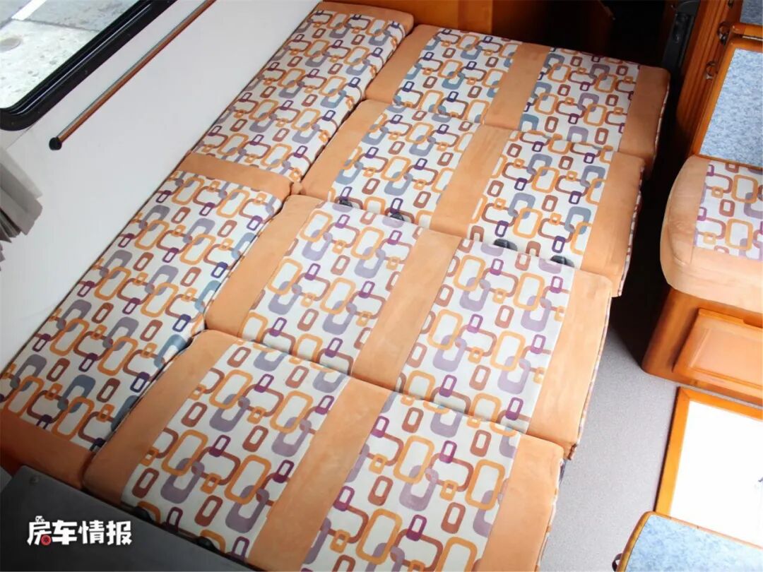 卡座对面还有一个长椅式沙发,就餐时,可与对面卡座共用,中间的小桌板便成了餐桌,设计很巧妙。在晚上可以当成单人床使用,从而提供另一个床位。