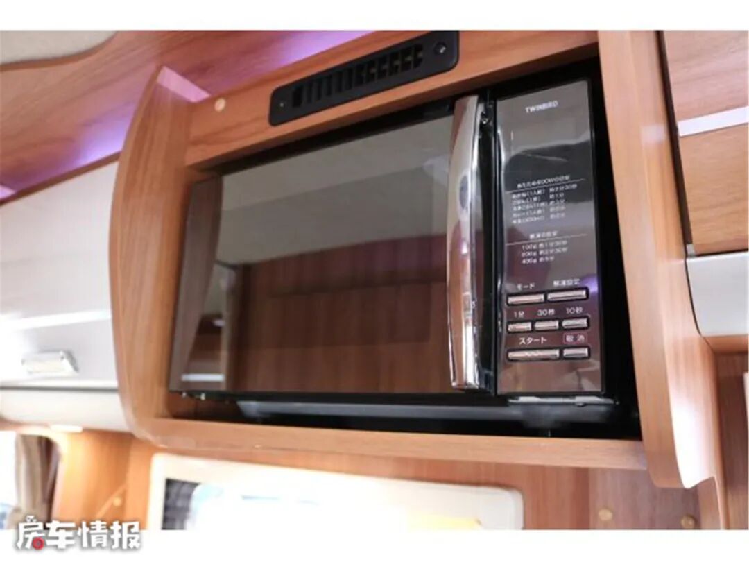 温控系统,车辆配有壁挂式家用空调+FF加热器,屋顶有通风口和换气扇,在保持适宜温度的同时还能净化空气。