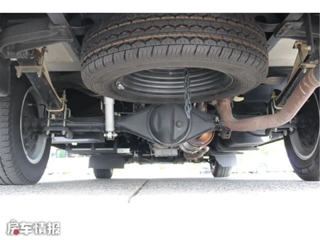 房车底盘的驱动方式是前置、前驱,两轮驱动,前扭力杆、后多片簧悬挂。这样的组合轻卡底盘上比较常见。