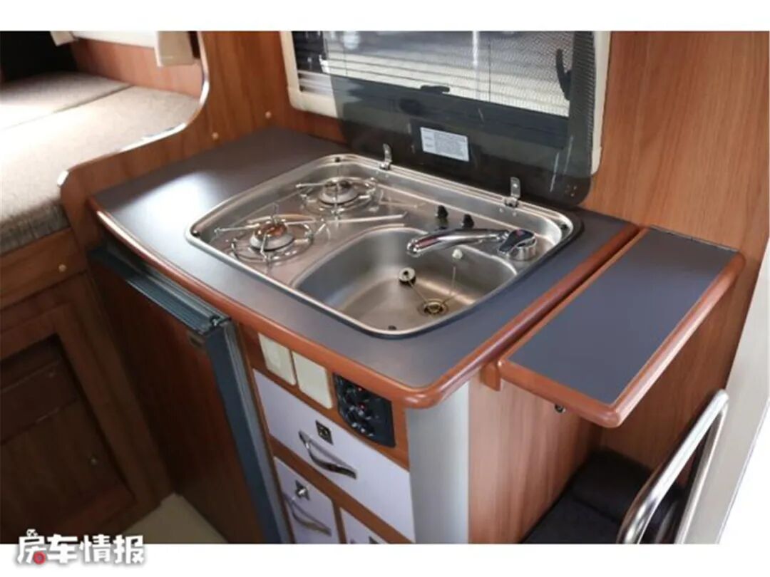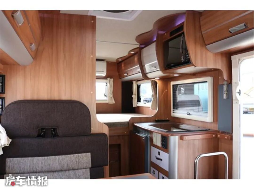 车内空间被分成了额头休息区、会客区、厨房区、卫生间和车尾休息区,布局清晰、空间充裕,基本上能偶满足一家3-5人在车内住宿休息。