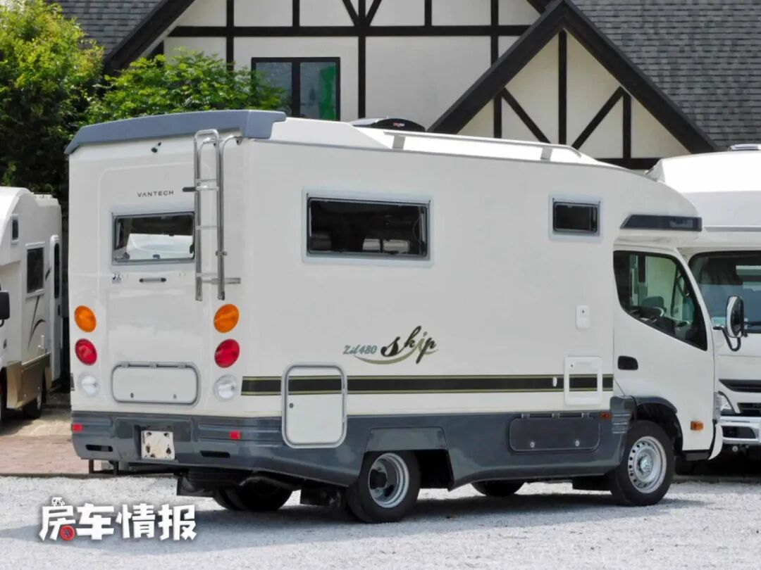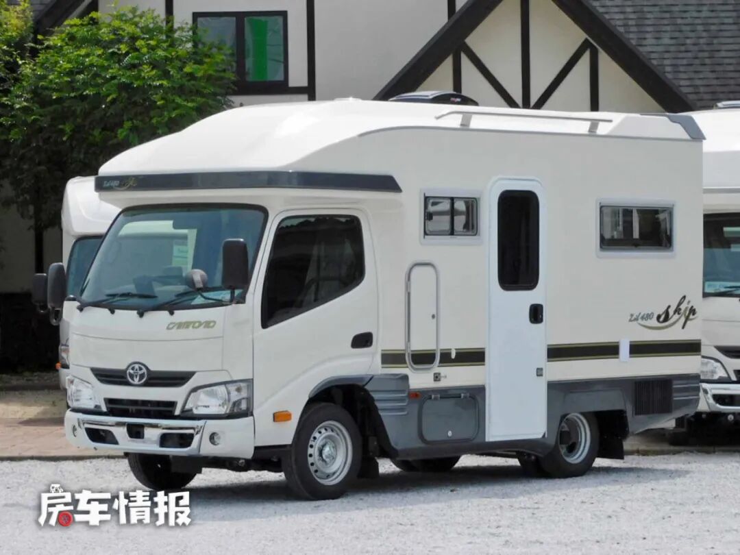 这款房车基于丰田轻卡底盘打造而成,整车造型和常见的轻卡房车比较相似,但是细节上的处理又有自己的想法,例如驾驶室顶部的头造型,相较于国内常见的车型,就要低矮不少,不仅提升了颜值,也在一定程度上减小了行驶中的风阻和风噪。