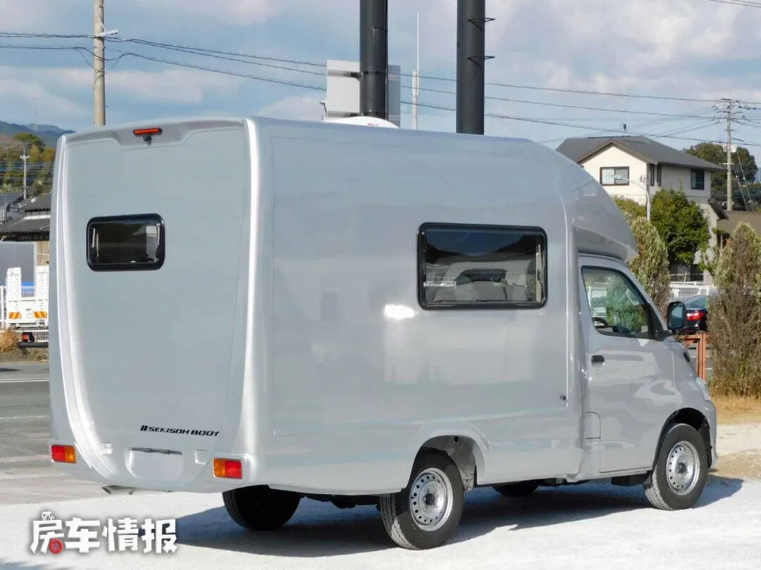这款房车基于丰田Light Ace底盘打造而成,是一款标准的微卡底盘打造的自行式C型房车,其定位和国内的五菱微卡房车类似,都是主打低端入门级市场,这点从车身外部的设计上也不难看出,单调的车身设计,显得有些廉价。