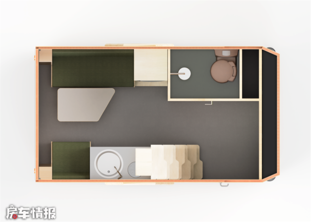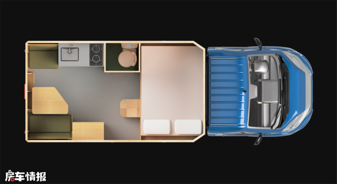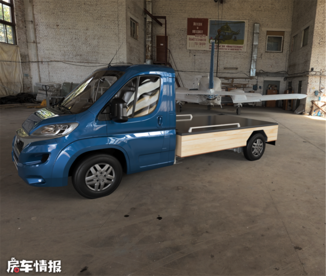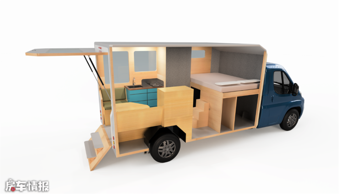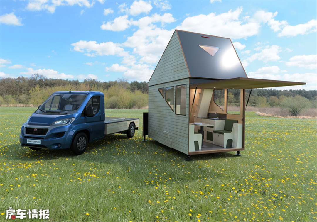 Niderland这款有点像木质车厢的C型房车,实木车厢和房车底盘固定在一起,更加稳定,也不用来回装卸了,然而就不能是实现车房分体后,只开着头车去购物的洒脱与自由了。