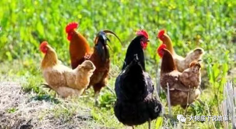 走了一段路,孙宏亮看到了一群鸡,不由得停住了脚步。只见那群鸡里有一只趾高气扬的大花公鸡,看上了一只跟着只黑公鸡的小母鸡。