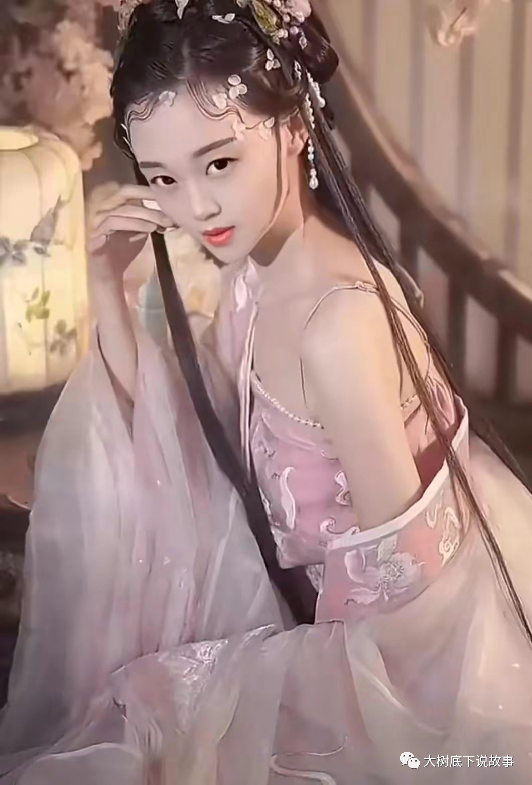 这时,有个十二三岁的小姑娘背着一个篓子走了出来。小姑娘穿着一身粉红的衣服,下巴特别尖,眼睛特别大,模样令人过目难忘。
