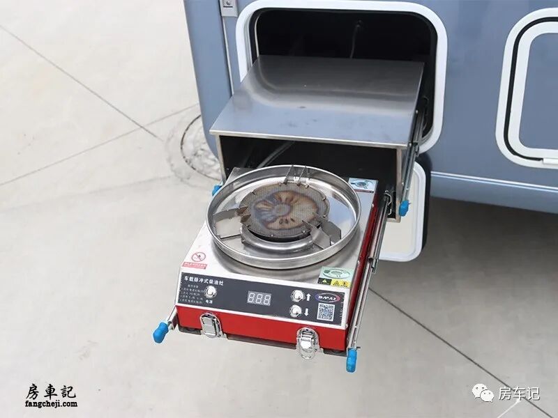 户外厨房的使用则更要注重了。炒菜时尽量不要将油渍溅到车体,即使溅到车体也要尽快清理不然车体就会有黄点。抽拉炉灶上不要放置太重物品,像煲汤、炖肉之类的就不要用了,因为拉杆很脆弱,长时间使用会容易变形,收纳时就会造成损坏。