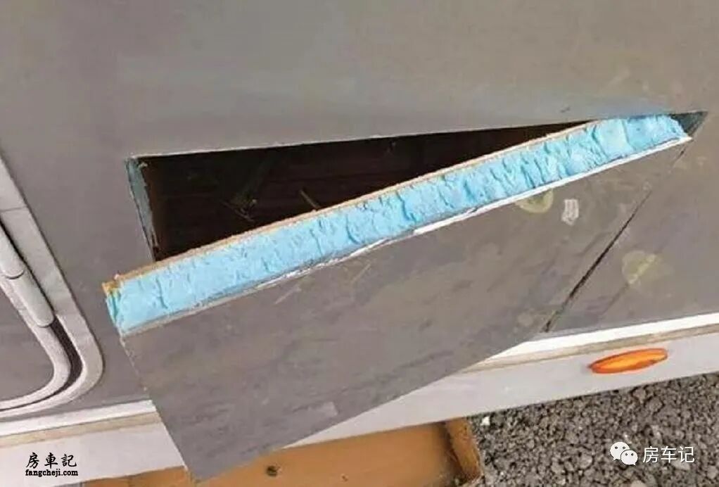 夹层板材是非常重要的材质,它的主要作用就是保温隔热,一般都是采用聚苯乙烯泡沫塑料板进行填充。在确保满足保温隔热的情况下就要考虑其材料的硬度了,因为房车有时会出现漏损的问题,比如外壁材质老化后,就会导致雨水渗入保温材料层。那么解决这一问题的厂家会选用XPS和PU复合材料,他们的硬度相较于单一的EPS泡沫要好很多。