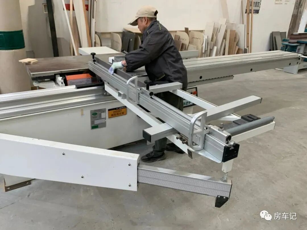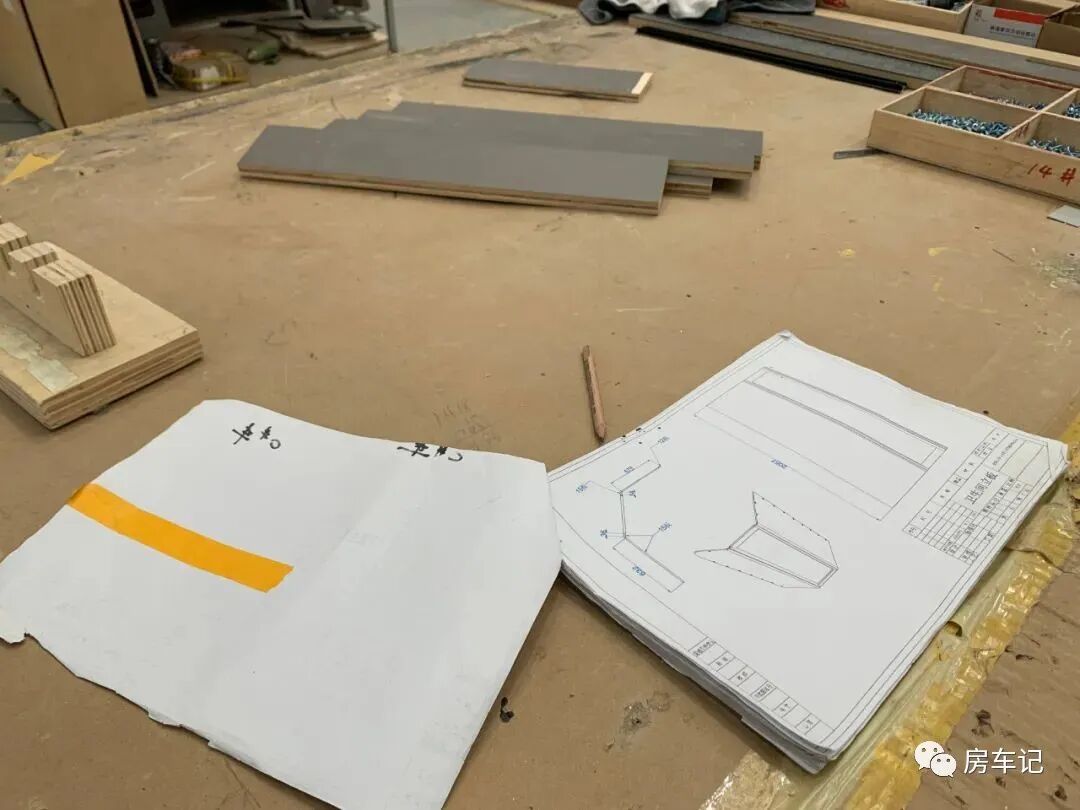 安装好整车的箱体,我们就开始制作车内家具。家具选用的是房车专用板材,符合轻量化、环保标准,由设计师出图,专业人员根据图纸将其切割塑造成型。中间也经历多个操作程序。