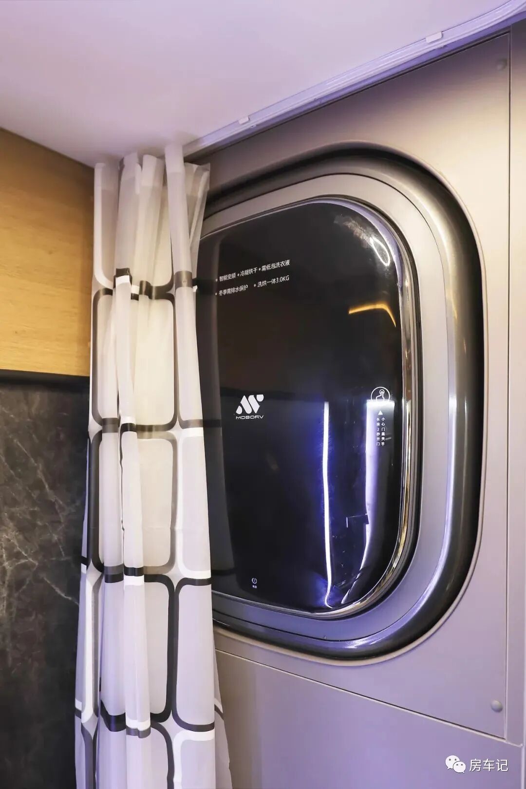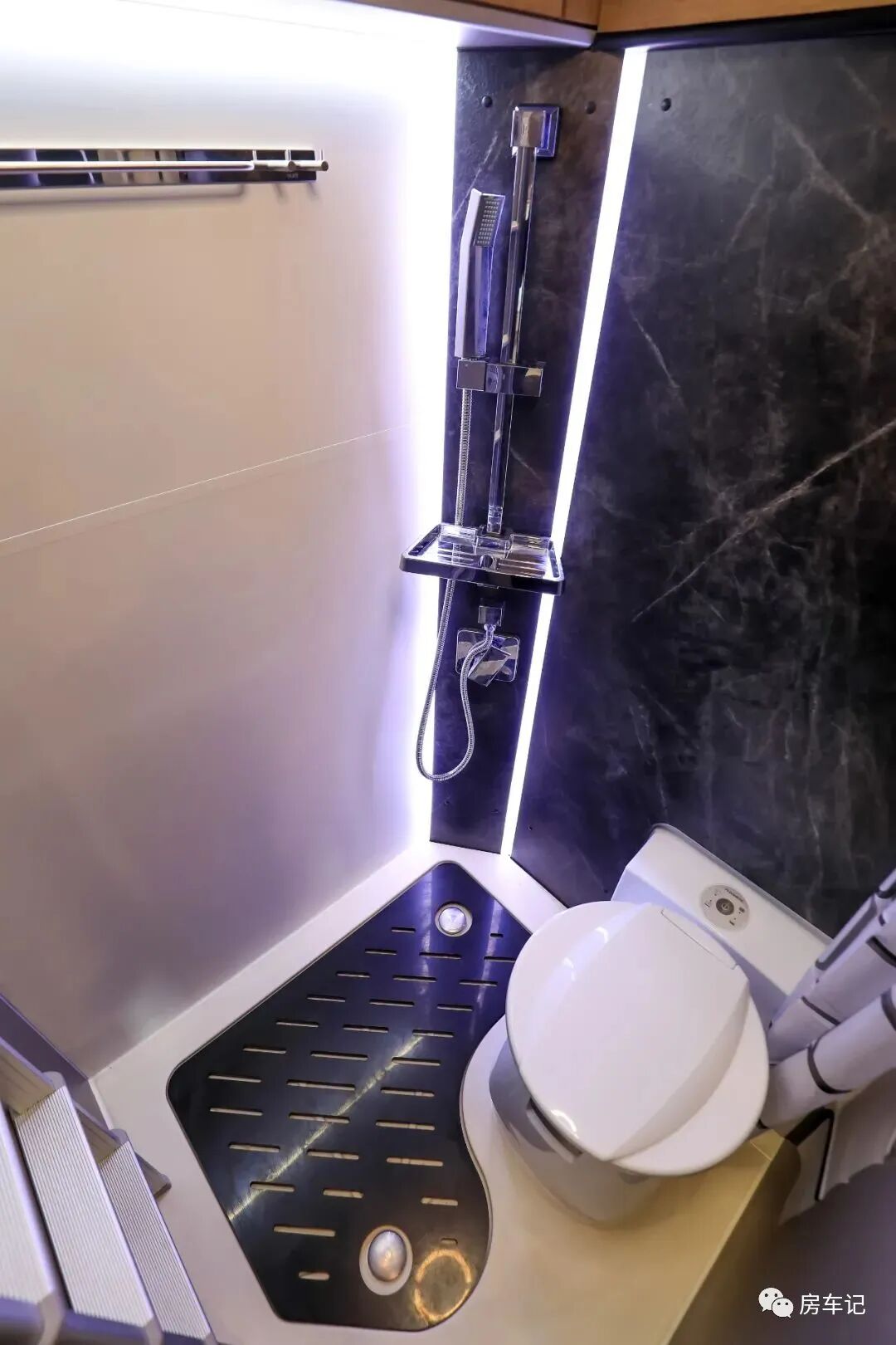 最后是大尺寸独立卫浴间,长途旅行必备“单品”,增加户外生活的舒适感,同时带烘干洗衣机也安装在此处。