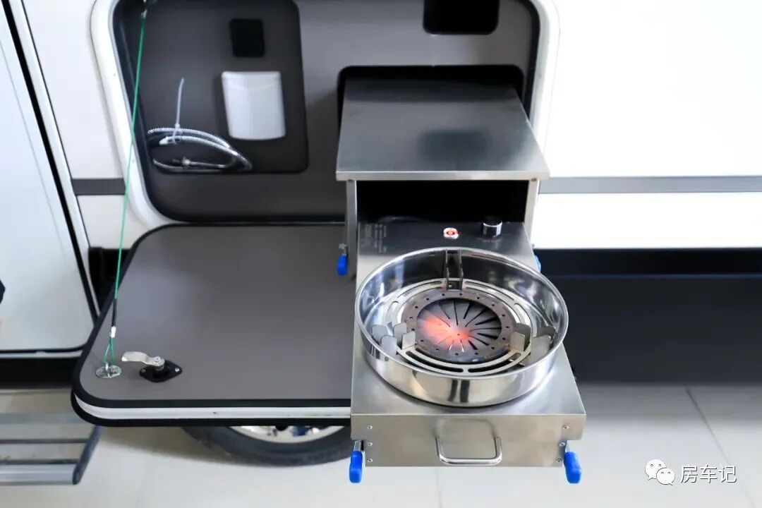 另外,户外厨房的柴油雾化炉也能满足国人的煎炒烹炸。