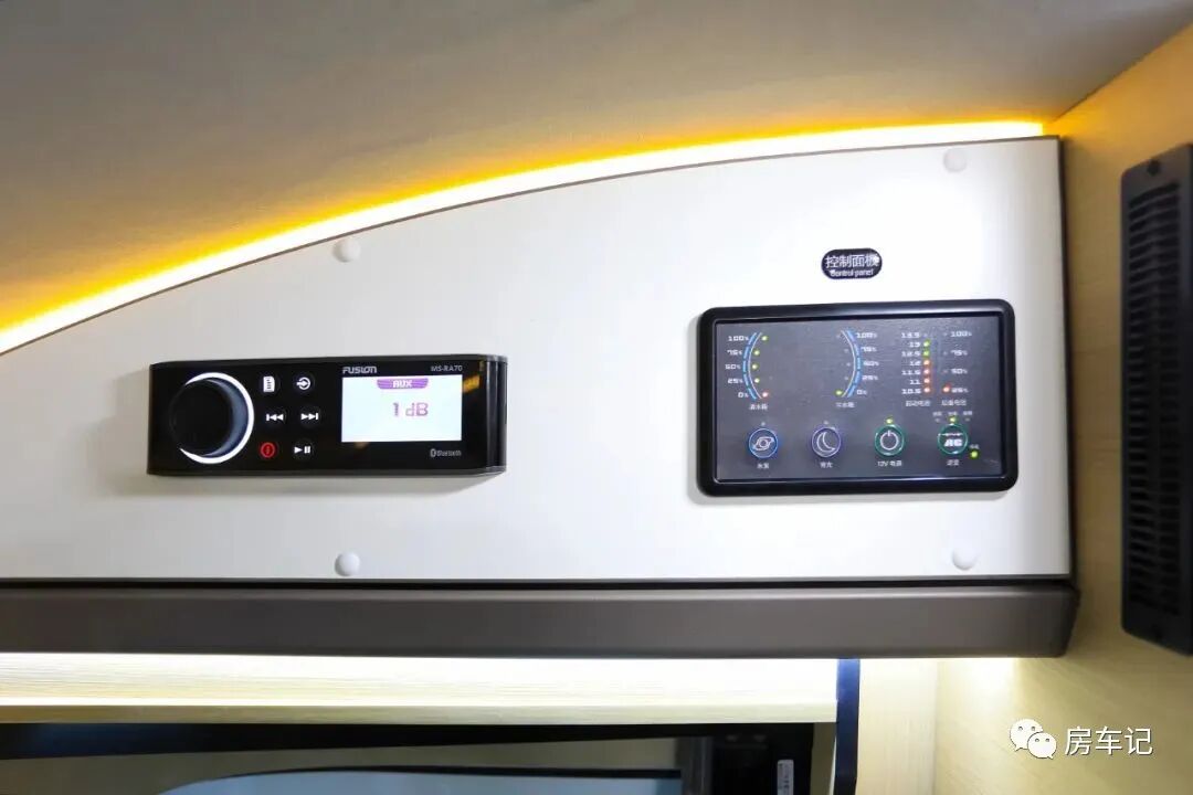 景宴房车的锂电和水箱一直设置于安全范围之内,对于电池升级也有一定的考虑,并且水电箱分开的设计布局,既配重合理,也不用担心水电挨着的风险;除此之外,整车采用环保轻量化板材,无异味不辣眼,大大减轻了整备质量,且覆PP膜,还防水耐磨。