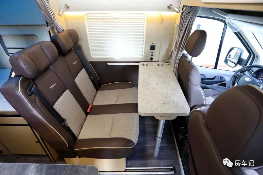 例如:景宴房车、锐仕C1采用的全部是经国家检验符合国标的座椅,具有3C检测报告,整套原装座椅,也更放心,同时餐桌也皆有固定点,结实耐用,能耐得住重力冲波。