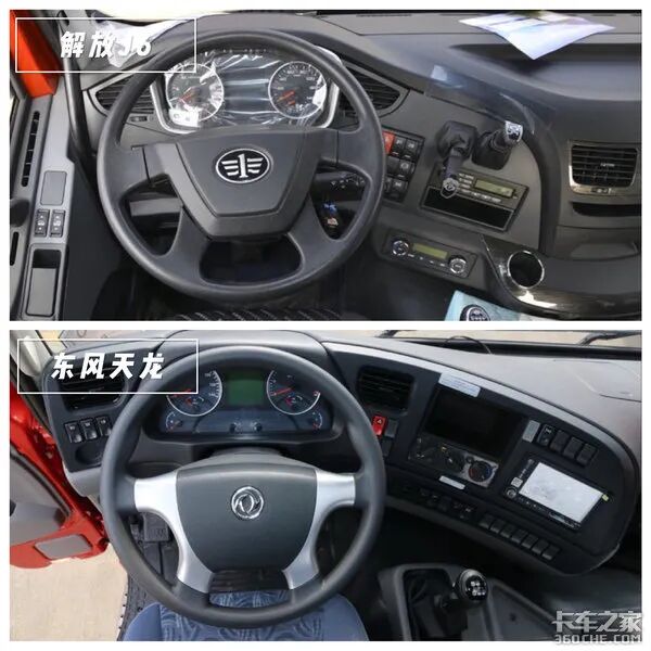 两车都采用了四幅式造型设计的方向盘,界面简洁,与初代设计相对比起来在视觉感受上都要更加厚实一点。对比两车型的价位在35万元以下,那是属于性价比系列的配置;而在高配车型上解放J6是带有多功能按键配置的,并且具有定速巡航功能,实用性表现不错的原因是因为解放J6的配置有跟着主流重卡的配置去更新,这才能换取更多用户的喜爱。
