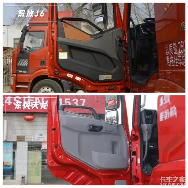 现代解放J6门板的设计就采用了三色拼接而成,并且留有实用性极强的大储物槽;东风天龙采用的是单调的浅色搭配,从门板的造型以及实用性来说,确实是有些时代感了。