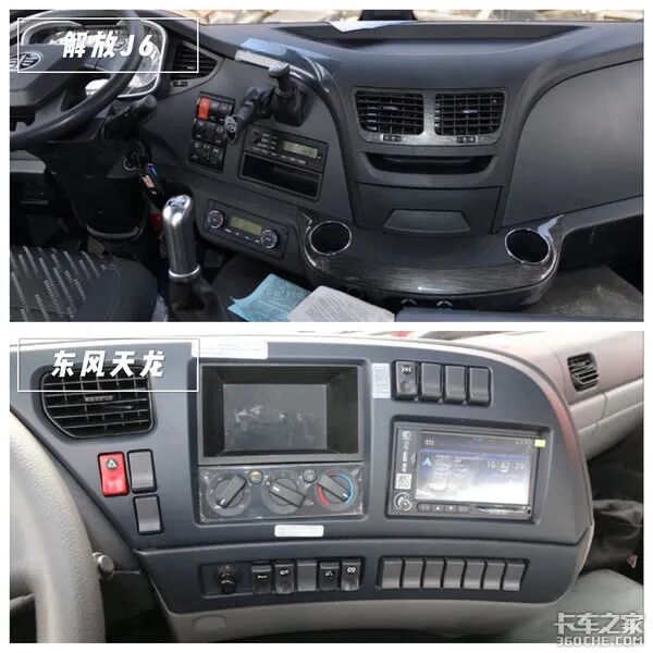 线条设计的耐看性值得时间去推敲,两车在外观部分大都保留了初代车型的模样,略微的调整也是为了迎合主流审美。同一发展时期,东风天龙的内饰从初代到现代基本“一成不变”,而对比解放J6却早已更换好几套内饰。