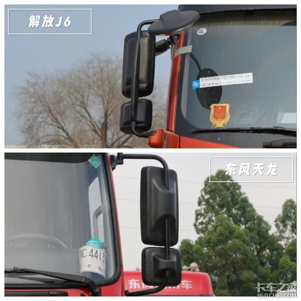 解放J6与东风天龙在目前两家车企的定位里,还是算实用性车型,“耍帅装酷”的配置和造型留给“大哥们”表演就行了,它们俩只要做好实用性的配置就足以满足用户的需求。两车统一采用了分体式后视镜外罩设计,主、补盲镜分别安装在后视镜杆上,后视镜外罩则是采用了塑料原色,节省了后期更换成本。