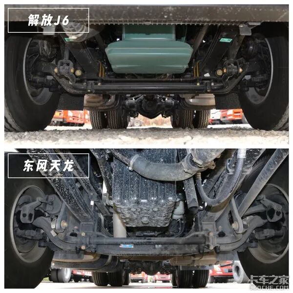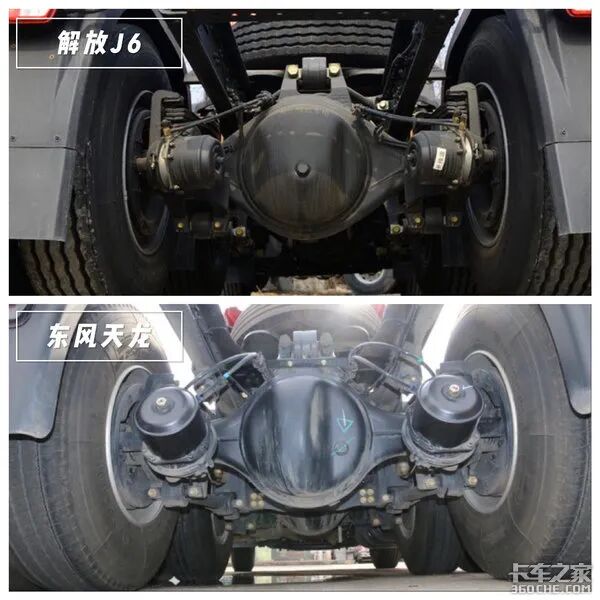 后桥速比在整个动力链里的占比也很重要,解放J6最小速比可选2.688,最大速比可选5.921;东风天龙最小速比可选2.69,最大速比可选5.26。两车整体动力链分布广,可适应的运输范围很大,例如追求高时效的小速比快递运输,又或者是需要大扭矩传动比的中短途砂石运输,两车的配置都能够胜任。