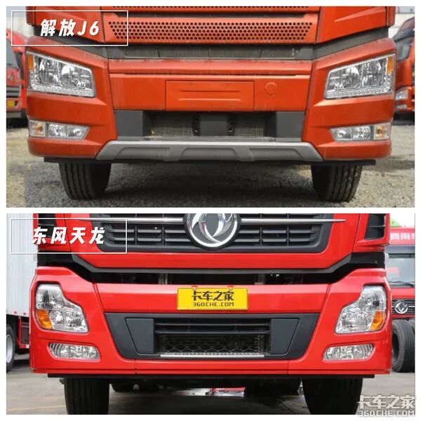 解放J6外观大部分都没有很大的改变,就是进气格栅、保险杠的线条设计进行了略微调整,使其看起来有着更加饱满的效果;而东风天龙则是取消了第一代车型的外摆镜设计,同时保留了那日式驾驶室最经典的三雨刮设计,在面板处与保险杠的线条也进行了细微地调整。