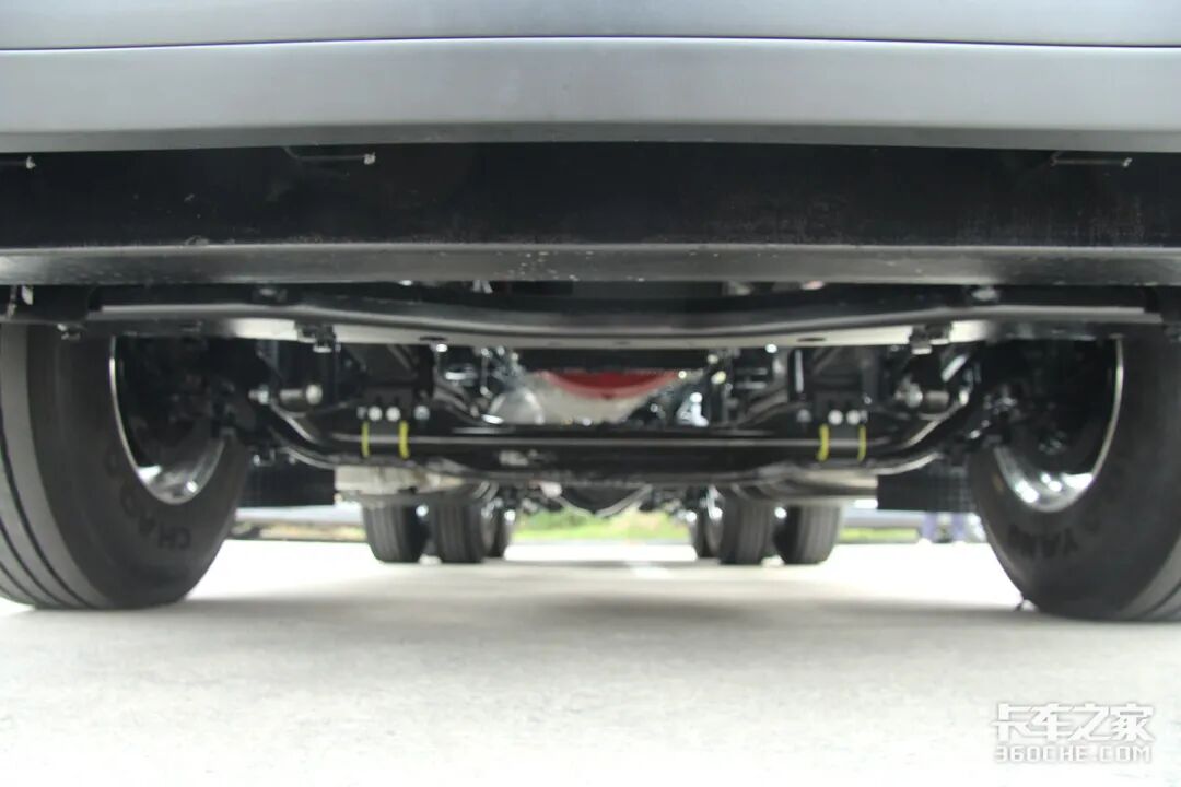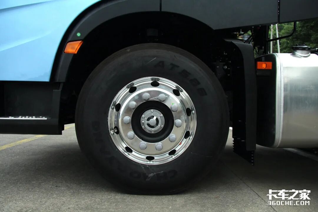 在轮胎方面,超越Q7采用了朝阳品牌的AT565系列轮胎,主打长距离运输以及耐用性。并且全车配备了珀然的铝合金车轮,可有效降低整车自重,提升车辆的操控表现。油箱为单侧600升大油箱设计,并且带有折叠式的蹬车踏板,可为超越Q7提供2000km左右的续航里程,对于倒短或资源运输的运输工况可以说轻松应对。