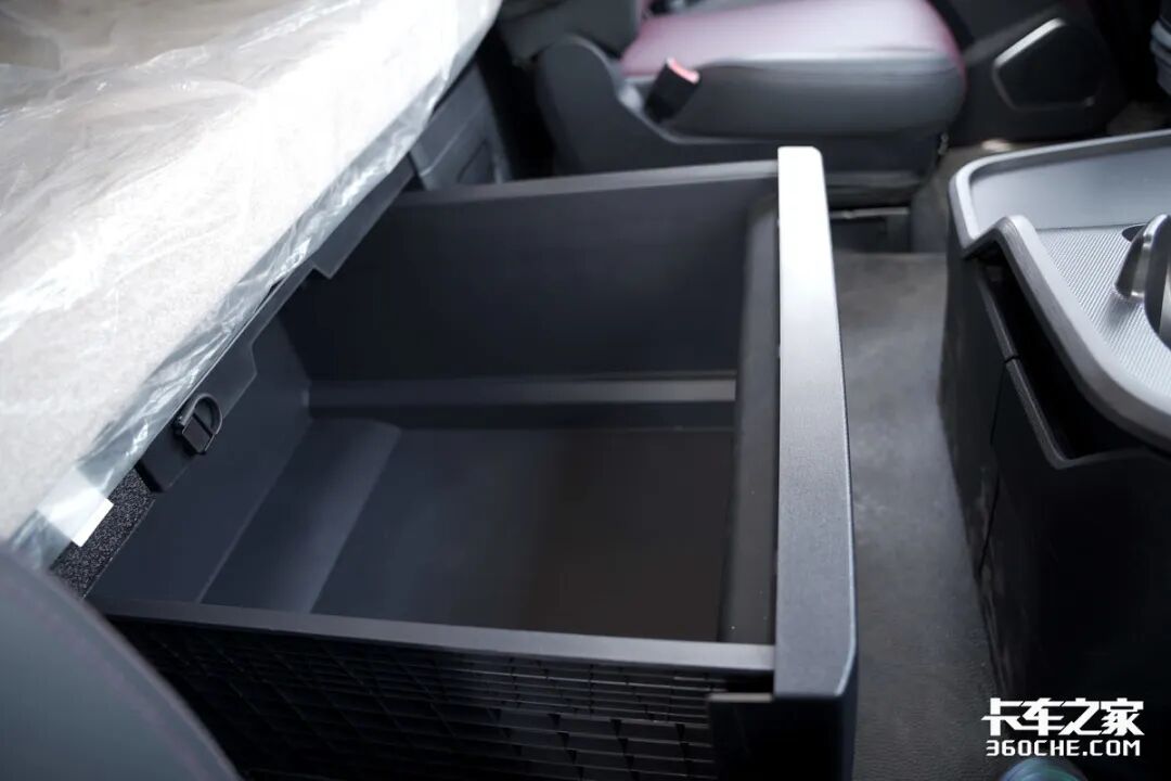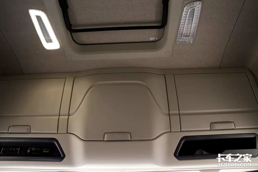 由于运输干线物流的卡友经常长年累月不着家,所以随车带的物品一般都非常多。解放J6V除了在车辆的下卧铺下方安置有封闭式储物格之外,在驾驶员的头顶上方也安置有三个非常大的封闭抽屉,保障了卡友们随车携带的衣物、被褥以及食物都能拥有自己独立的储存空间,干净又卫生X2。