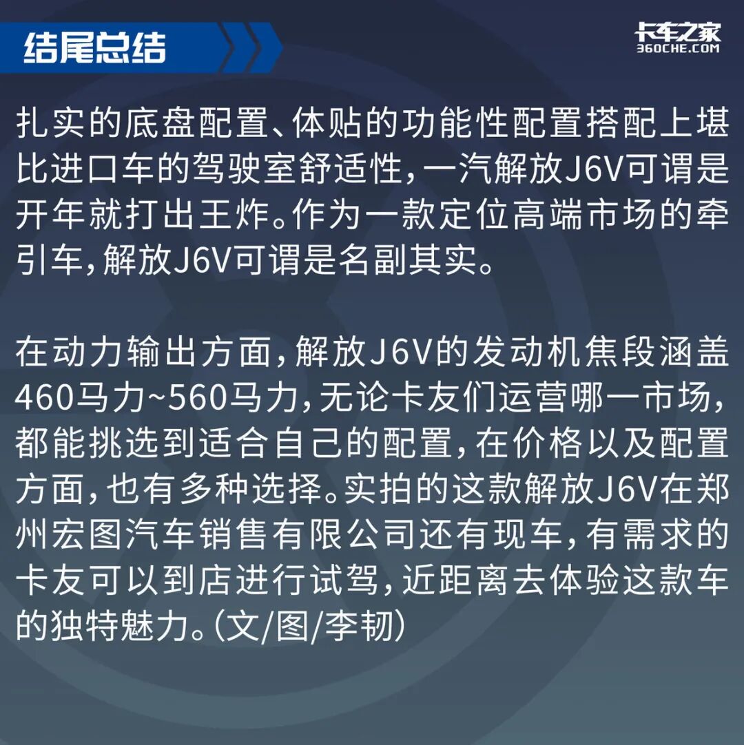 【卡车之家 原创】在今年一汽解放的商用车年会上,有一款车可谓是赚足了眼球——解放J6V,作为解放J6P的“升级版”产品,这款解放J6V主要面向的是高端牵引车市场,相较于J6P而言,不仅升级为了平地板驾驶室,并且底盘和驾驶室也是全面优化升级(其中驾驶室中功能性配置的使用可谓是比女朋友还贴心),具体能有多惊艳,咱们接下来就仔细唠唠。