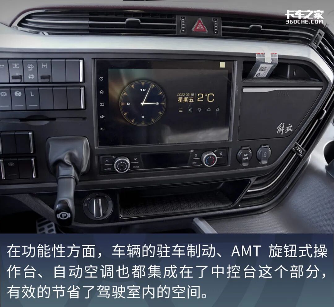 进入国六阶段之后,越来越多的中重卡车型都开始配备AMT变速箱。实拍的这款一汽解放J6V搭载的是解放自主研发的CA12TAX265A手自一体变速箱,相较于传统手动变速箱来说,AMT变速箱的换挡时机会更加的稳定,换挡逻辑也是越发的智能,面对日益飙涨的油价,AMT变速箱稳定的换挡时机更有利于帮助省油。