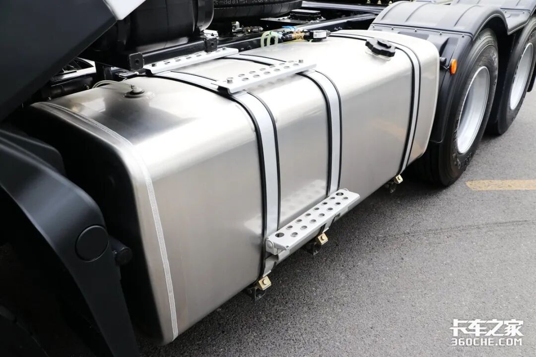 搭载双铝合金油箱,容量为800+500L,1300L的油箱能够保证车辆拥有4000公里以上的续航能力,减少加油次数,提升货运效率。