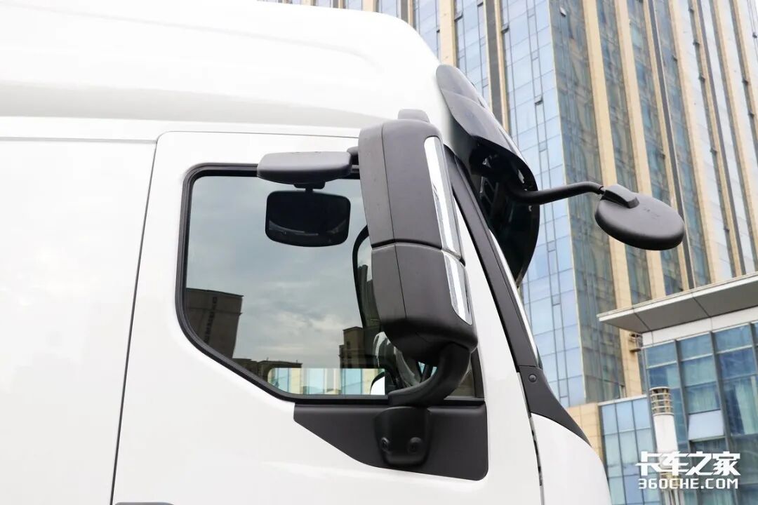 采用一体化后视镜,在一定程度上能够降低风阻,同时较宽的镀铬饰条更显精致。并且后视镜支持电动调节以及加热功能,在雨雾天气或者风沙较大路段能够更方便的使用,对于跑全国路线的高速快运场景更加合适。