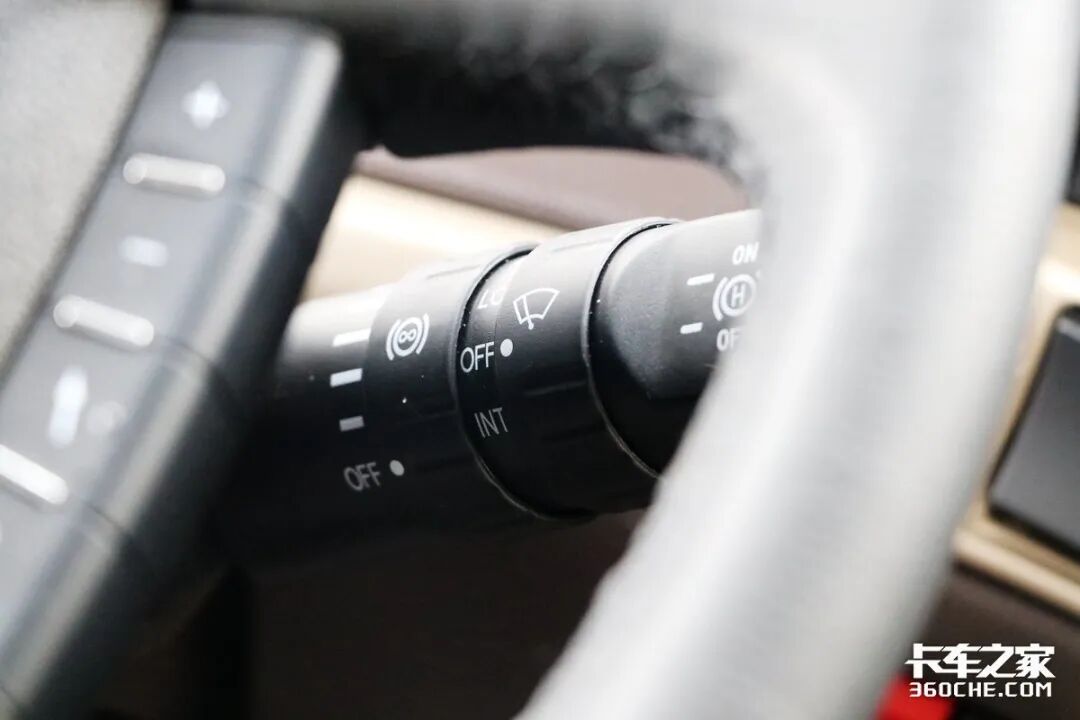 液缓开关以及力度控制集成在方向盘右侧拨杆上,对于长途干线物流运输来说,长下坡并不罕见,这项配置也能够更好的保证驾驶员的行车安全,同时降低驾驶员的紧张情绪。