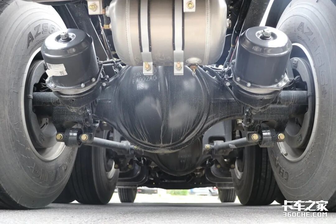车辆前桥采用153加强桥,允许载荷达到7000kg,后桥为两条新440后桥,允许载荷达到18000kg,速比为3.7。值得一提的是,车辆均采用康迈轮边,能够保证车桥拥有更长的保养周期,对于高速快运来说还是比较重要的。