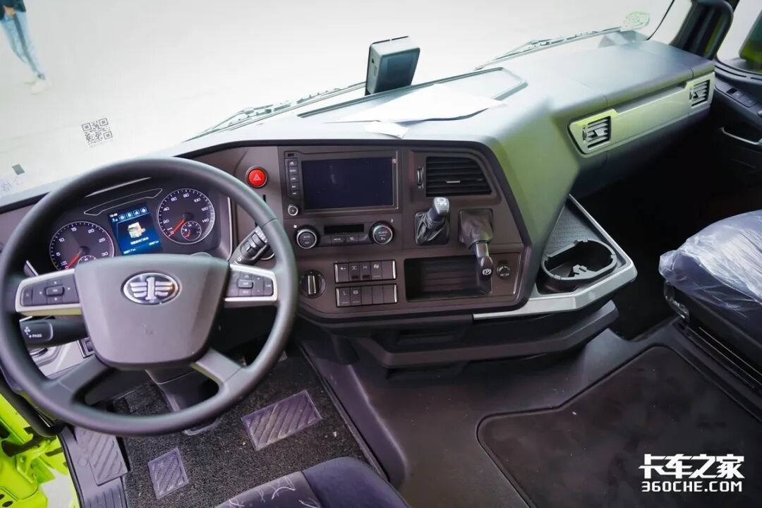 J7作为一汽解放的旗舰车型,综合它驾驶室内的所有配置来看,磨砂黑中控台的质感很好,人机交互设计十分到位,旋钮自动挡的更是便捷卡友驾乘的一大利器,舒适性表现优秀。