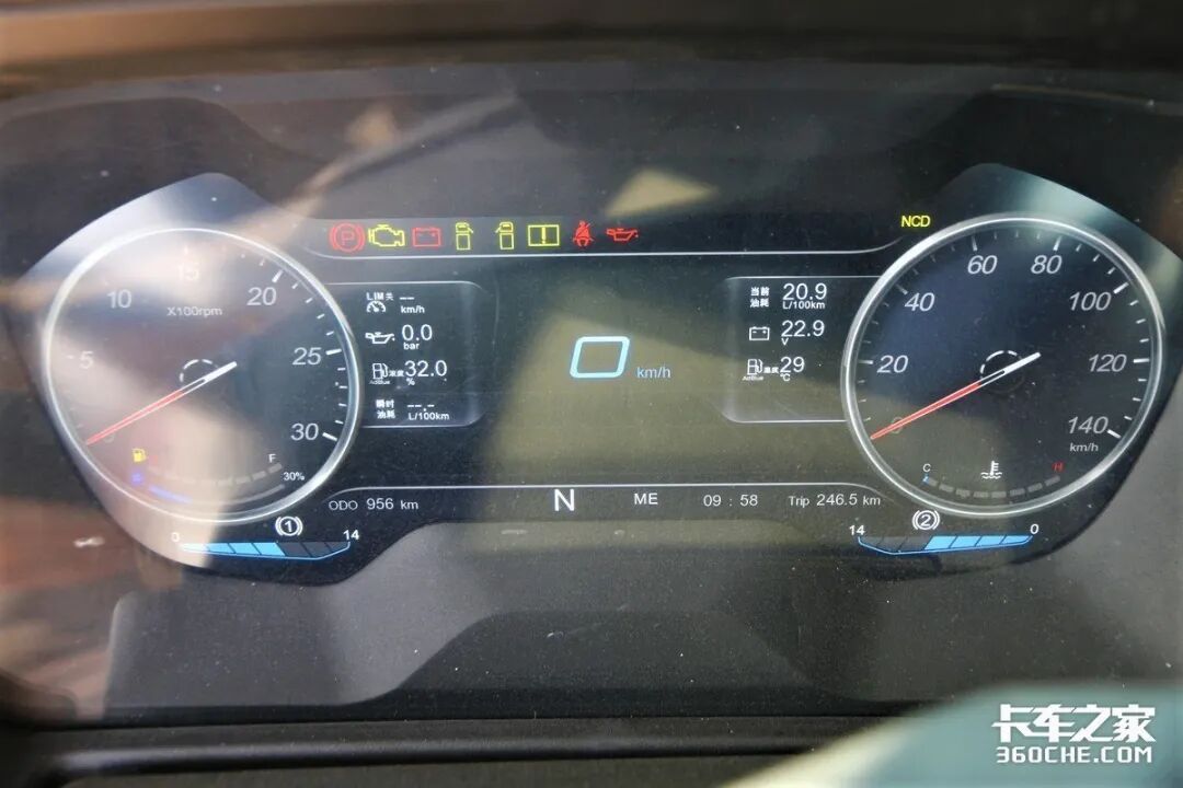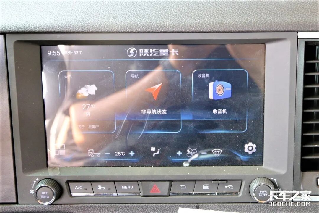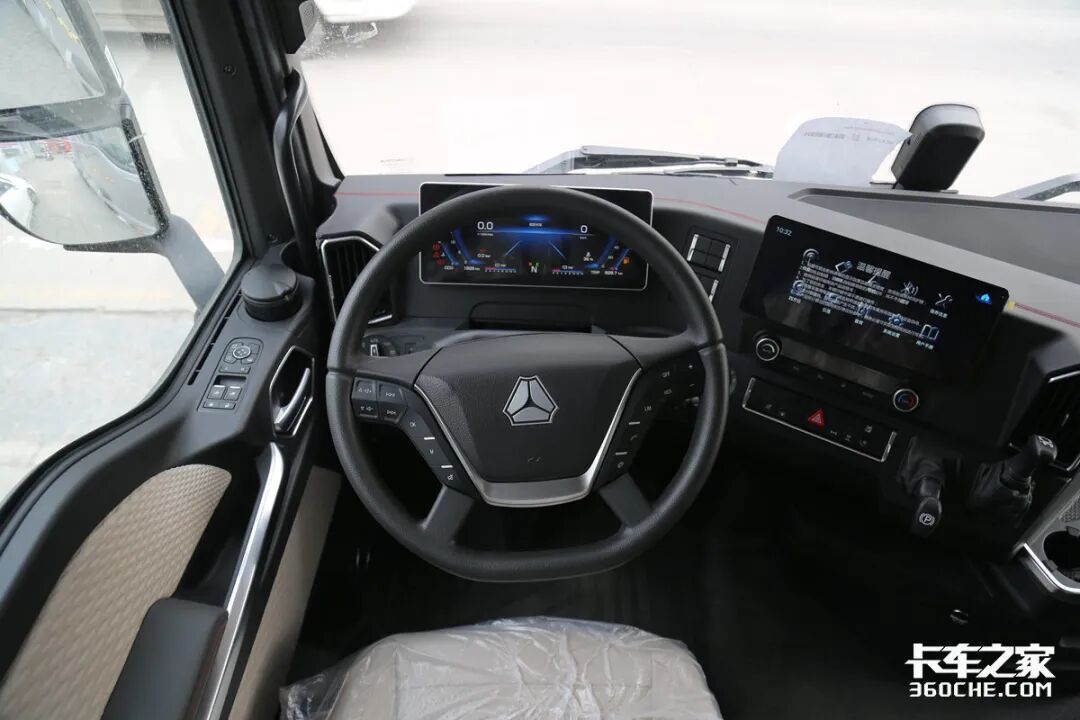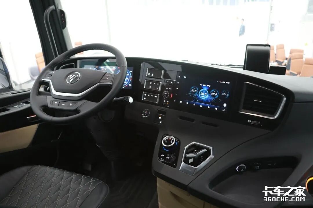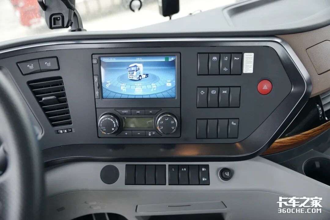 主驾位中控台使用了在卡车上非常少见的悬浮式中控台和悬浮式大屏,给人感觉简洁但富有科技感。现在的高端重卡都在追求信息高度集成化,同时要求驾驶员接收到的信息更直接、更简单,掌握车辆动态更迅速。C9H的双液晶屏完美契合了这些要求。