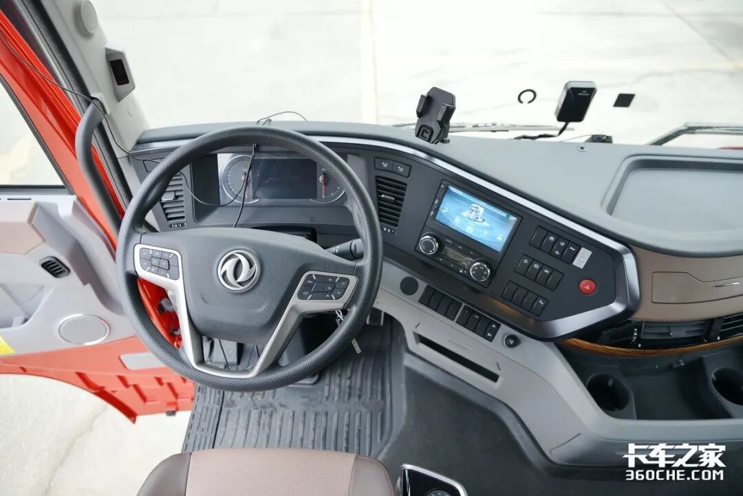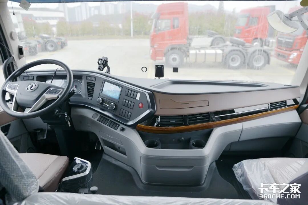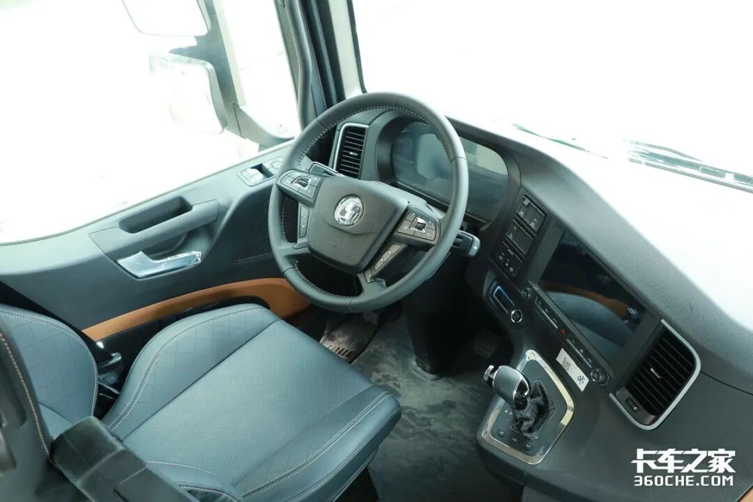 天龙旗舰KX作为东风的旗舰重卡车型,综合它驾驶室里面的配置来看,中控台采用了双拼配色,非常具有设计感,全皮质、带通风加热功能座椅可以带给我们优质的驾乘体验。