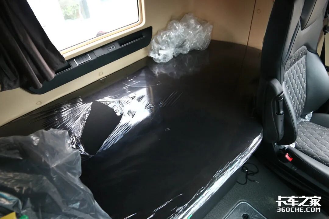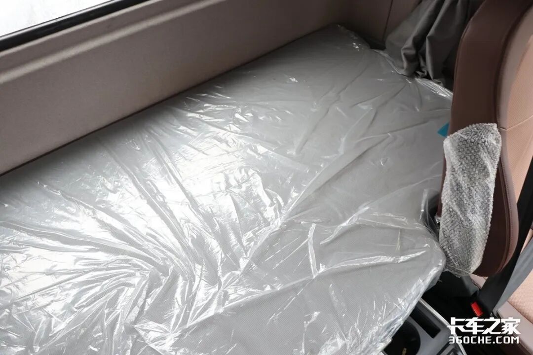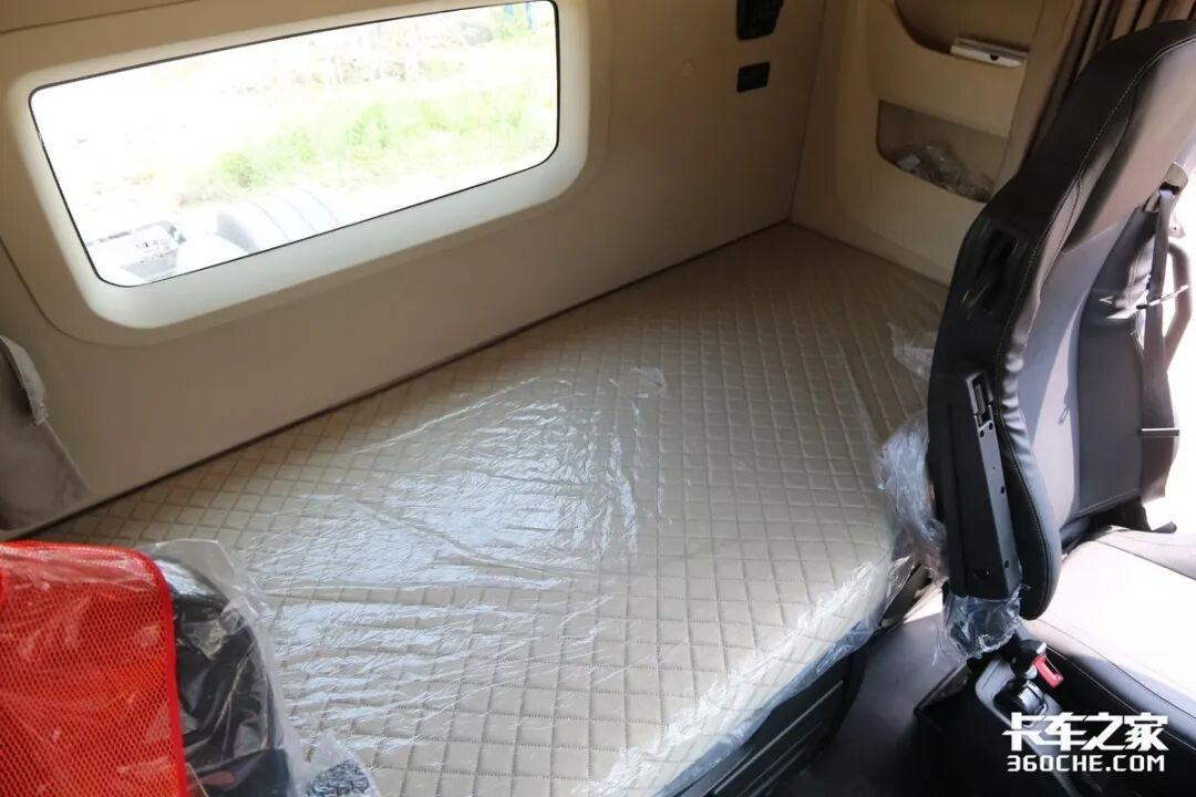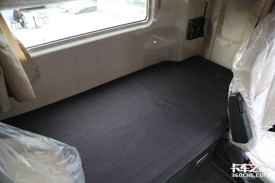 卧铺最宽处为85厘米左右,在现在的主流牵引车当中属于正常表现。卧铺三面有原厂自带的窗帘,考虑十分周到,在床头的位置有单独的储物盒和USB充电接口。