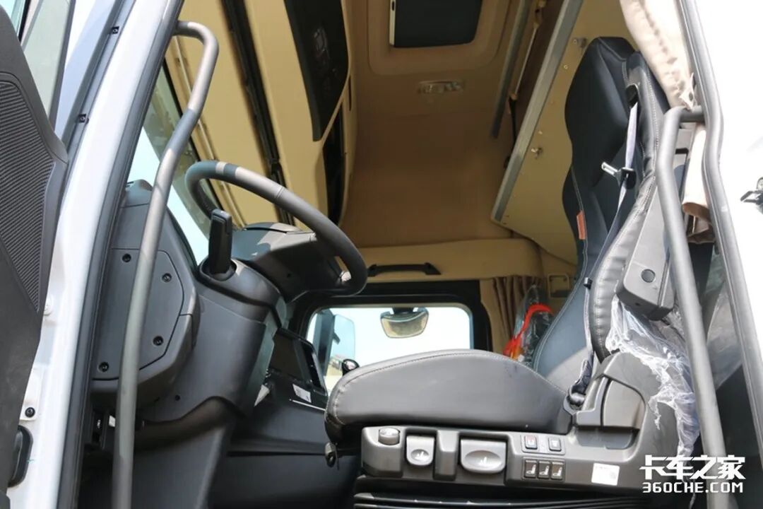 汕德卡C9H作为重汽汕德卡的旗舰车型,从驾驶室配置来看,整体造型硬朗,具有肌肉感,同时信息集成度高,操作便捷,再者主副驾均配置气囊减震座椅,驾乘十分舒适。