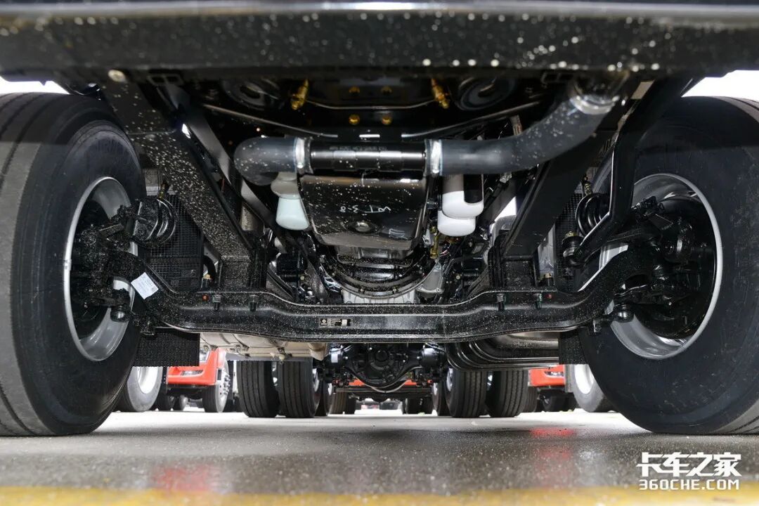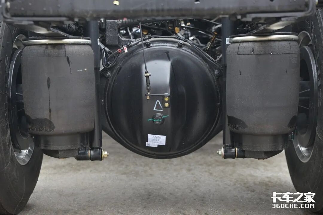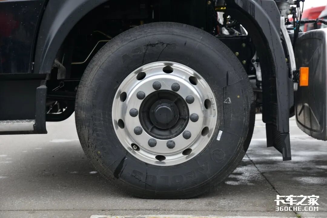 在轮胎方面,实拍车型采用了风神ASR06系列低滚阻轮胎,尺寸为295/80R22.5,。同时前后桥均配备了铝合金车轮,可以有效降低整车自重,提升车轮的耐用性。