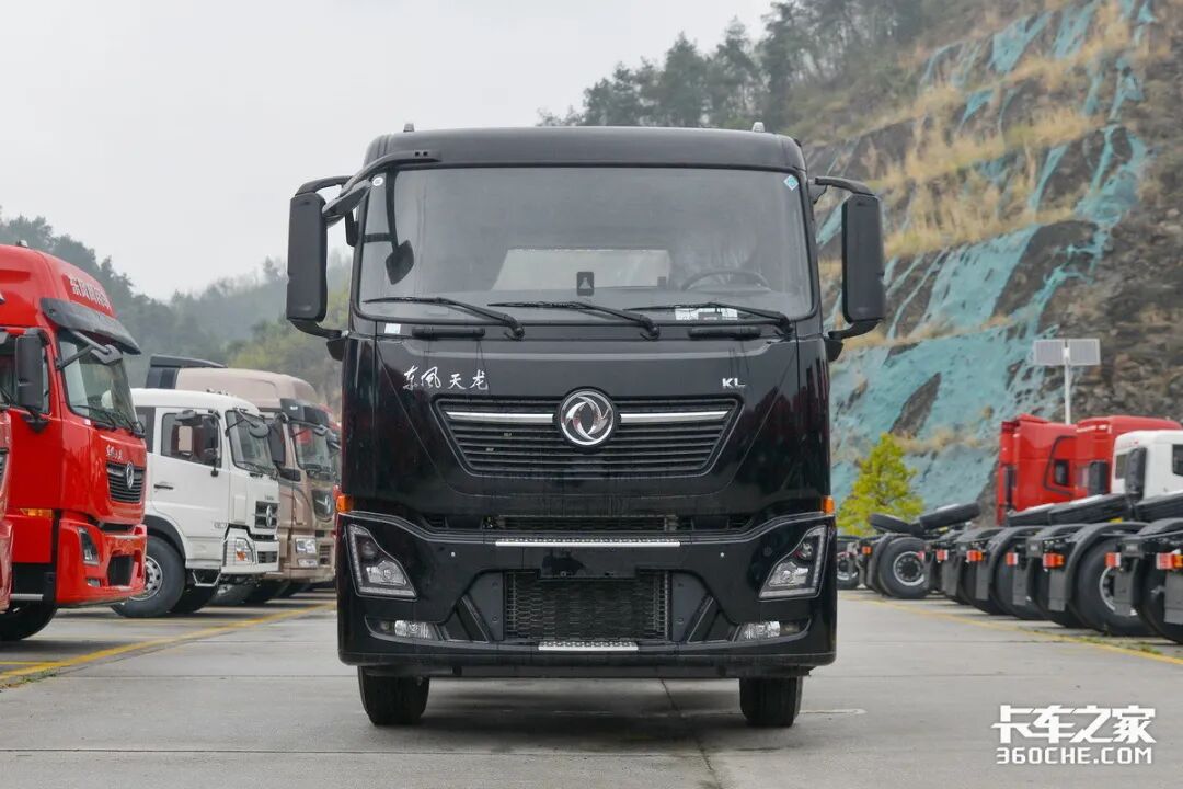 在我们常见的天龙KL车型中,一般多以红色涂装为主,而黑色涂装不仅看起来更特别,而且有种“酷”范儿。整车也正是由于搭配了黑色涂装,配合KL车型棱角分明的外观设计,显得格外简洁利落。