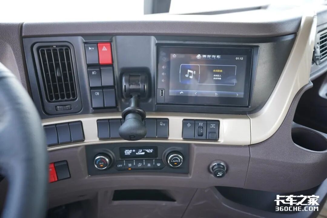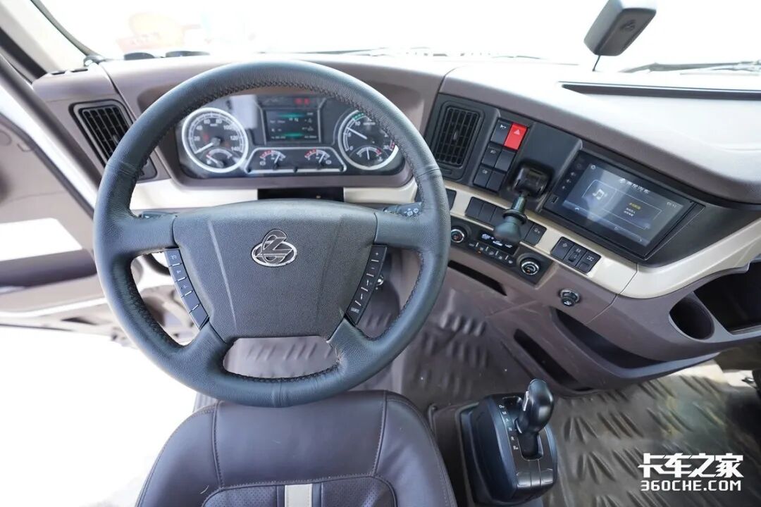 内饰方面,德龙X6000,采用高顶双卧平地板驾驶室,标配四点气囊悬置保证其行车舒适性。还有伊思灵的气囊座椅,集成腰部、背部、靠背角度、阻尼调整、仰角调整、一键充放气等多项调节功能,即便颠簸路段也能如履平地。