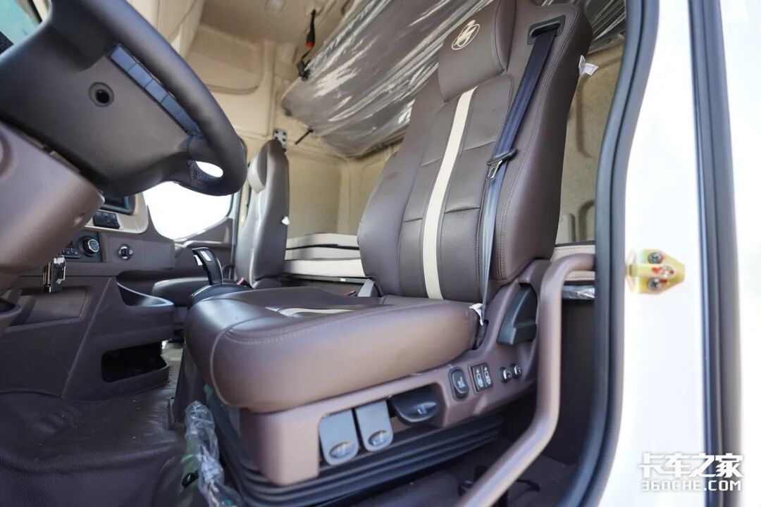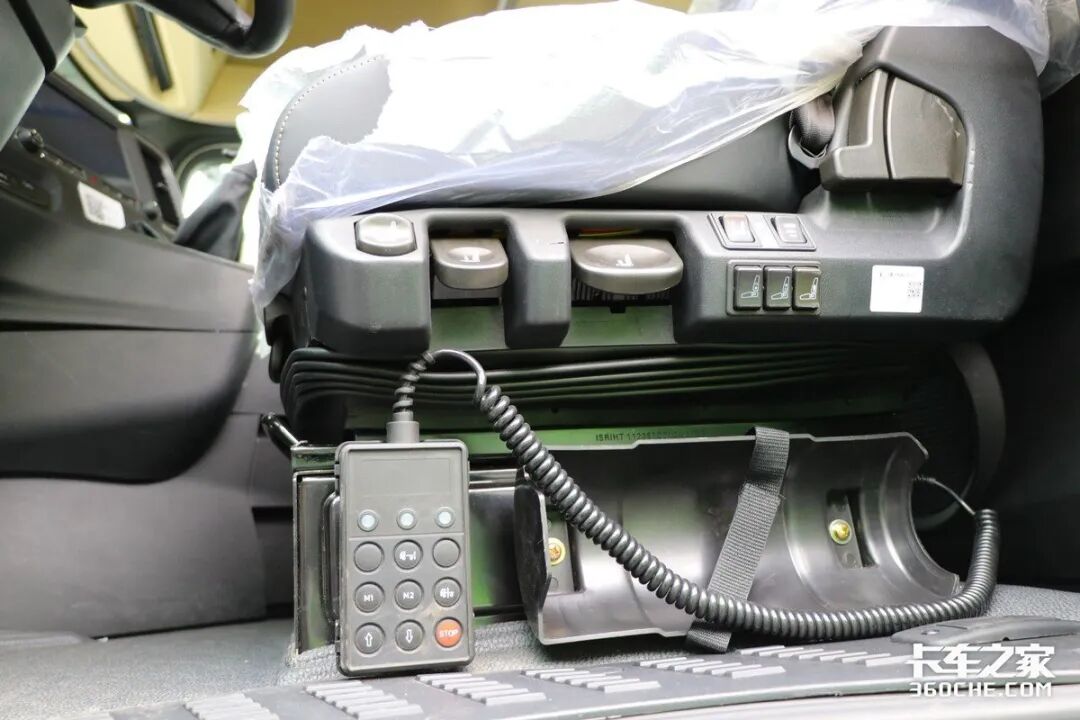 该车座椅也是具备气囊功能,大部分的重卡车型基本都是标配气囊座椅,而且该座椅还进行了优化设计,配备有扶手软包和腰部调节优化,舒适性不言而喻。