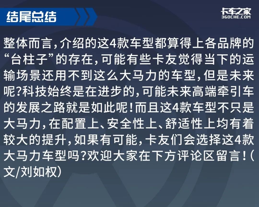【卡车之家 原创】随着我国物流运输业的高速发展,超大马力牵引车不断喷涌出现,因为大马力意味着动力储备更充足,能适应的路况更多。那本期卡车之家找出了四款600马力以上的牵引车,全都是国产产品,其车型配置较高,具体车型为哪些这就为你展开介绍!