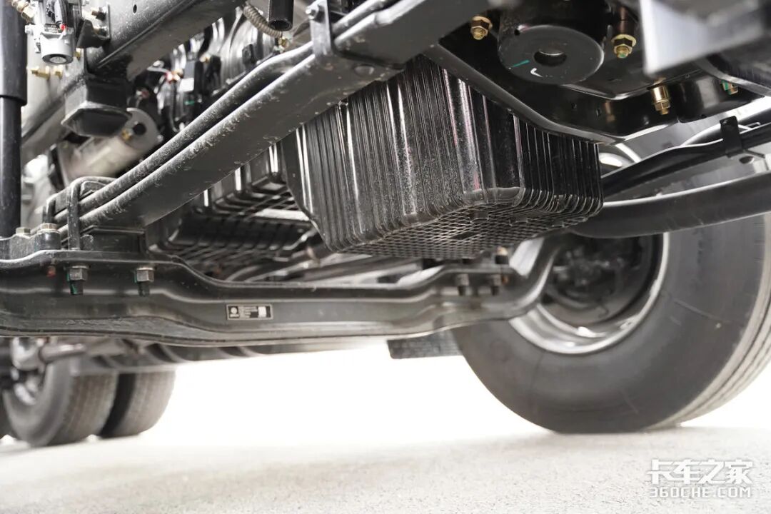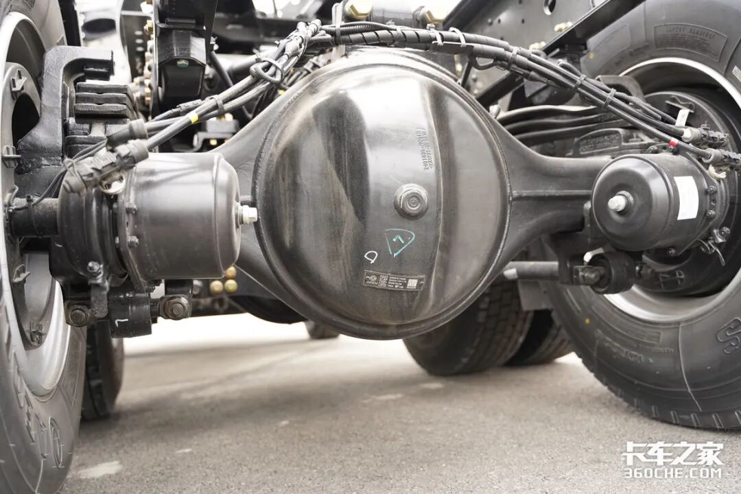 后桥采用的是东风经典的440后桥,实拍车的后桥速比为3.64,另外也可选择3.42的后桥速比,悬架方面都采用的是少片簧设计,前2后3。