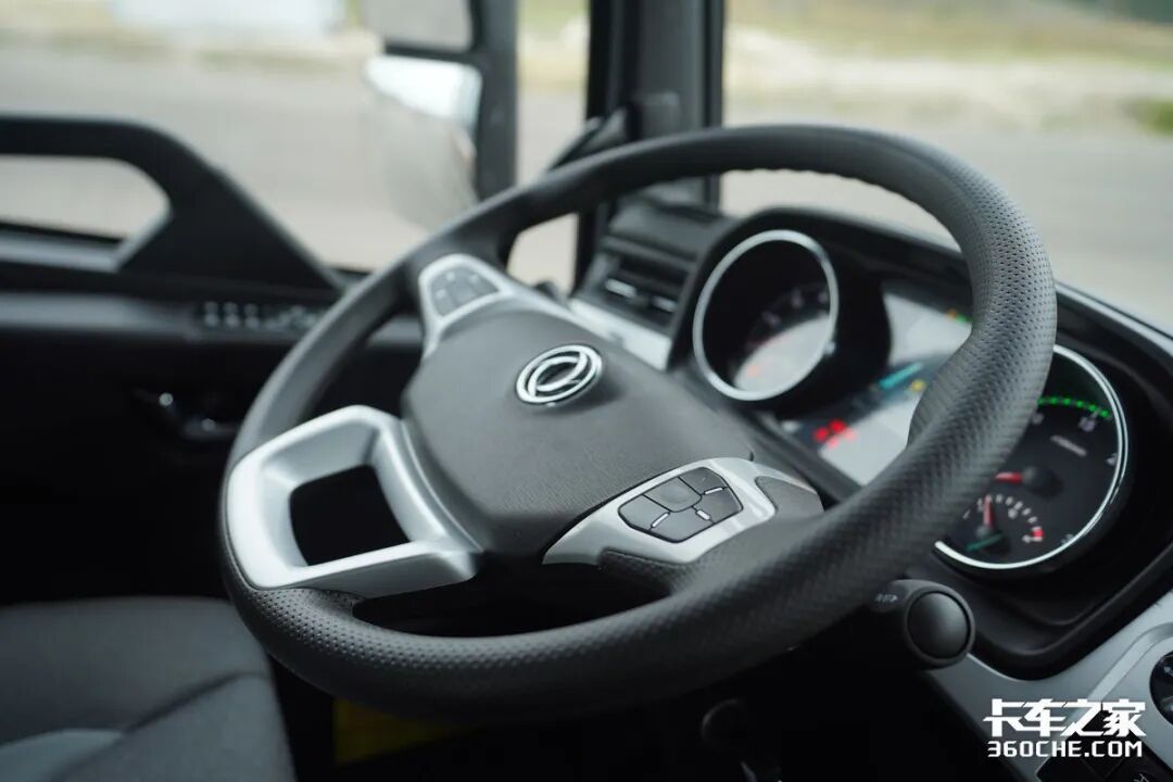 实拍的东风天龙KL支持多功能方向盘,带有定速巡航设计,手不需要离开方向盘就可以完成操作,更加安全。电动调节电加热后视镜也是标配,设计在车门板上,方便驾驶员随时操作。