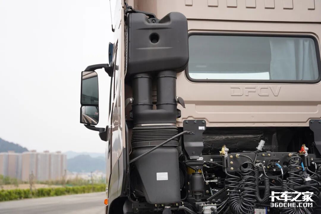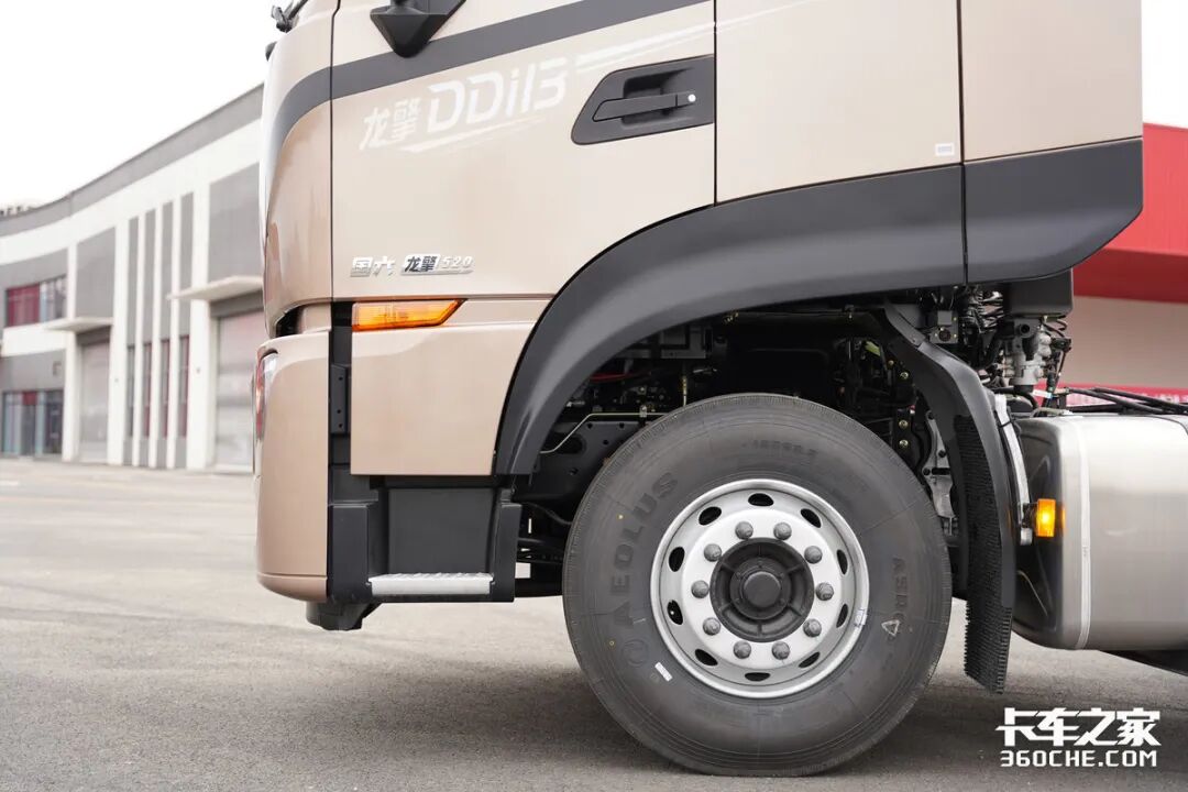 此前,东风天龙KL主要搭载的是龙擎DDi11系列发动机,实拍的这款东风天龙KL升级为龙擎DDi13系列发动机,排量升级为12.9L,大排量大马力发动机也是目前牵引车市场所趋。