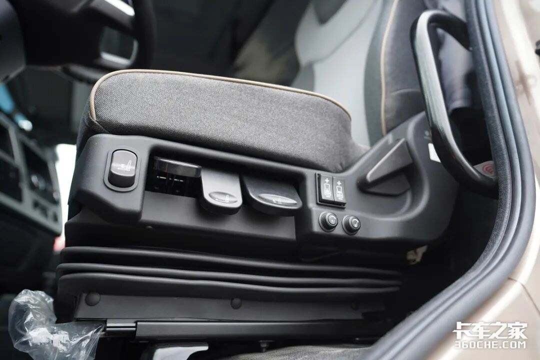 主驾驶座椅采用的是气囊减震座椅,带有多项调节功能,包括腰背部支撑调节、气囊软硬调节等,并且带有通风加热功能,无论是夏天炎热时,还是冬天寒冷时,开车都可以更加舒服。此外,为了照顾副驾驶的乘坐舒适性,副驾驶也可选装气囊减震座椅。