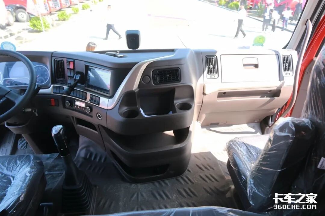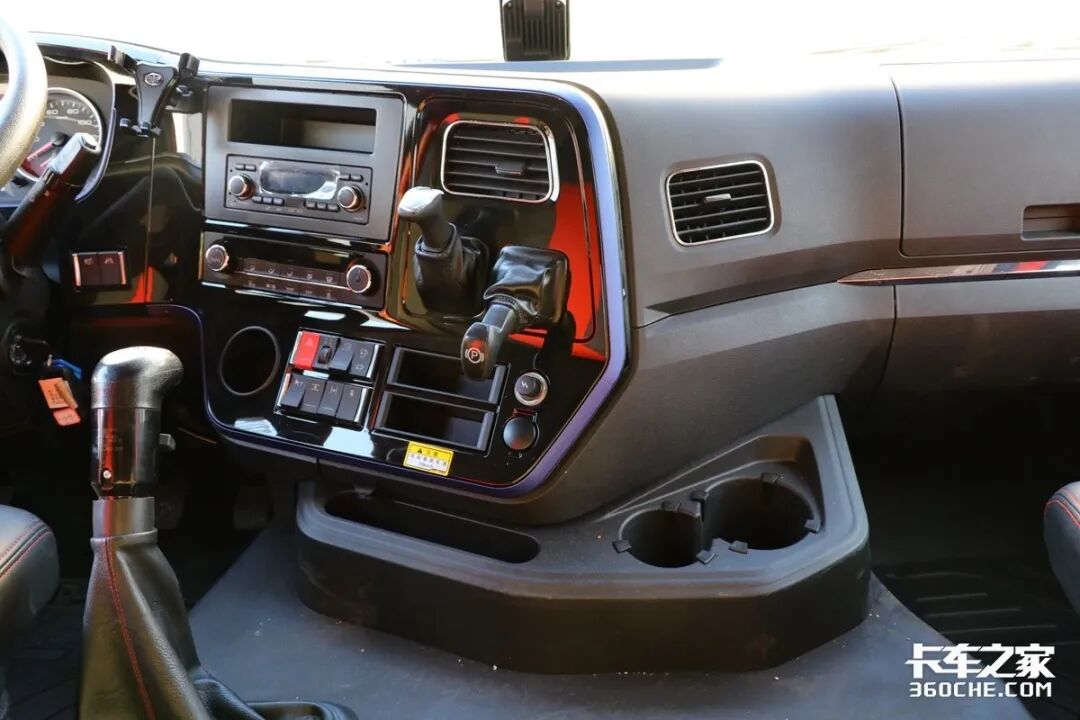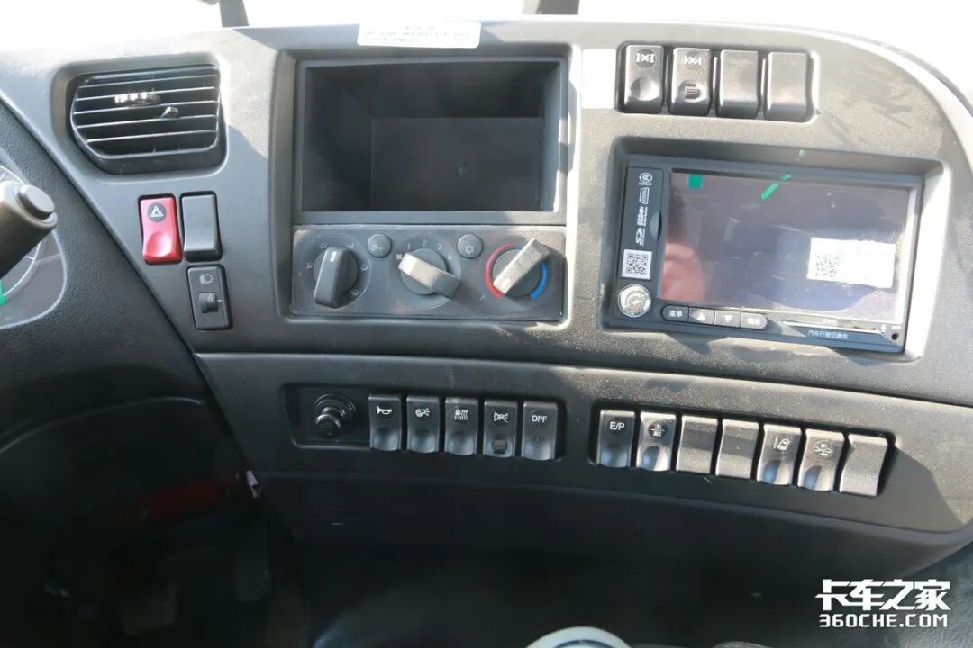 仪表盘采用了指针式设计,并且还贴心地将经济转速区间进行了绿色高亮显示。中控台这里采用了弧形面板,整体都朝向驾驶员倾斜,除了轮间、轴间差速锁、主副油箱开关、E/P模式开关外,在主动安全方面像前防碰撞预警、车道偏离预警也都有配备。另外,在中控台上方还准备了一个原厂手机支架,对于经常查看导航的卡友们来讲很方便。