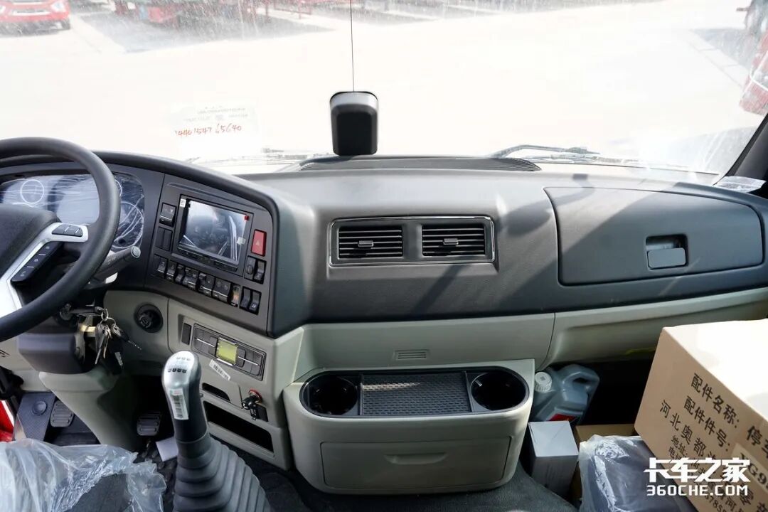 驾驶室的配置方面,子母车的区别并不大,两台车均配备有驾驶室气囊悬置及气囊减震座椅,大幅提升行驶质感,降低疲劳感。并且两车也都有配置中控液晶彩色大屏,后视镜电动调节和电加热、中控锁、原厂手机支架等等,母车还多出了多功能方面盘这项配置。