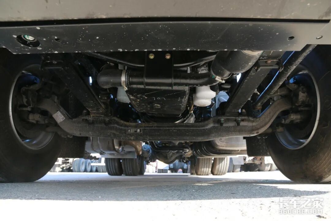 底盘其它配置方面,悬架采用了前2后3的少片簧悬架。轮胎是来自于东风风神的子午线钢丝胎,规格为12R22.5。