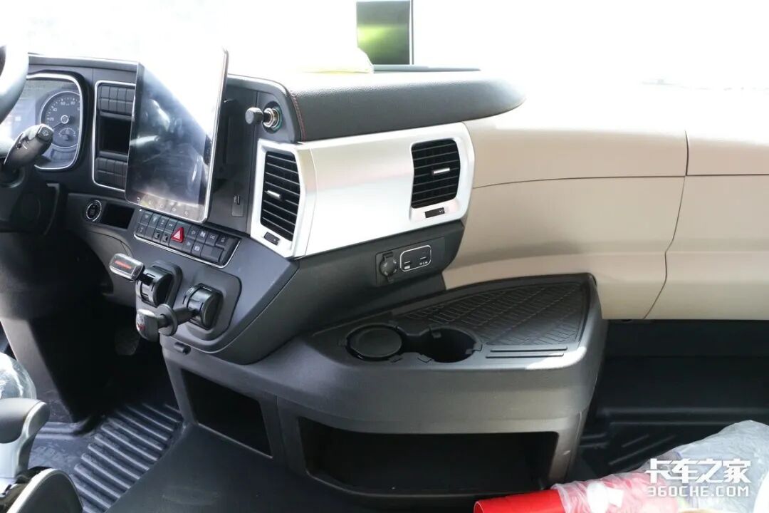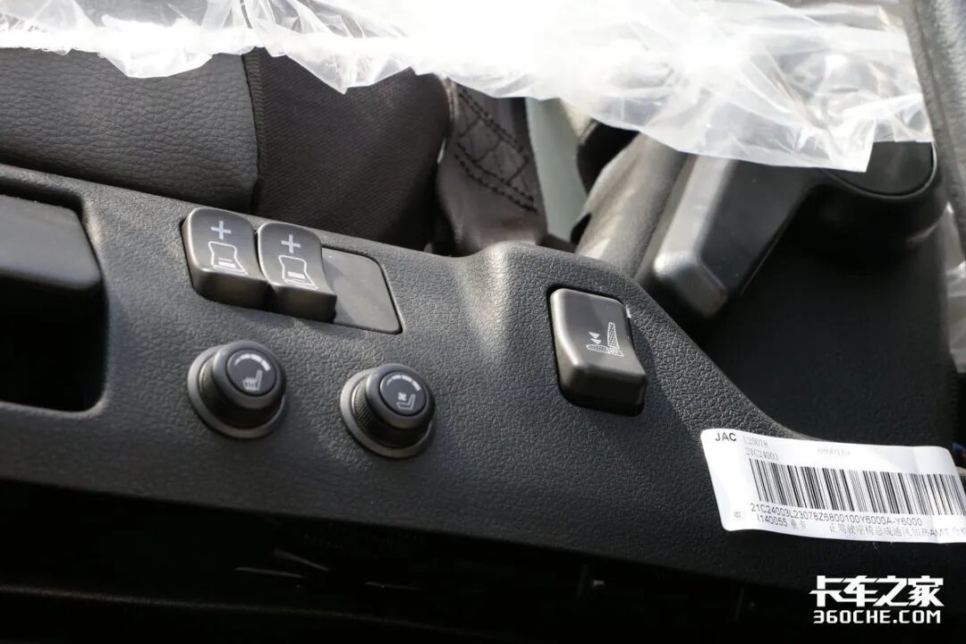 该车主副驾座椅均是具备有气囊减震功能,还支持通风加热以及两级腰部支撑调节,就这舒适性能,即便长途运输足够劳累,也能很大程度上减轻卡友们的疲劳程度。