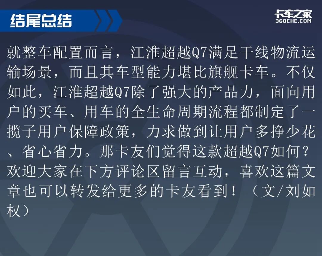 【卡车之家 原创】作为国内老牌的卡车企业,江淮旗下的系列产品一直在市场上保持着较好的口碑和保有量,其中江淮重卡的A系和K系两大平台车型更是深得卡友之心。但今天要介绍的主角不是它们,而是江淮在2022年推出了开年力作——江淮超越Q7。